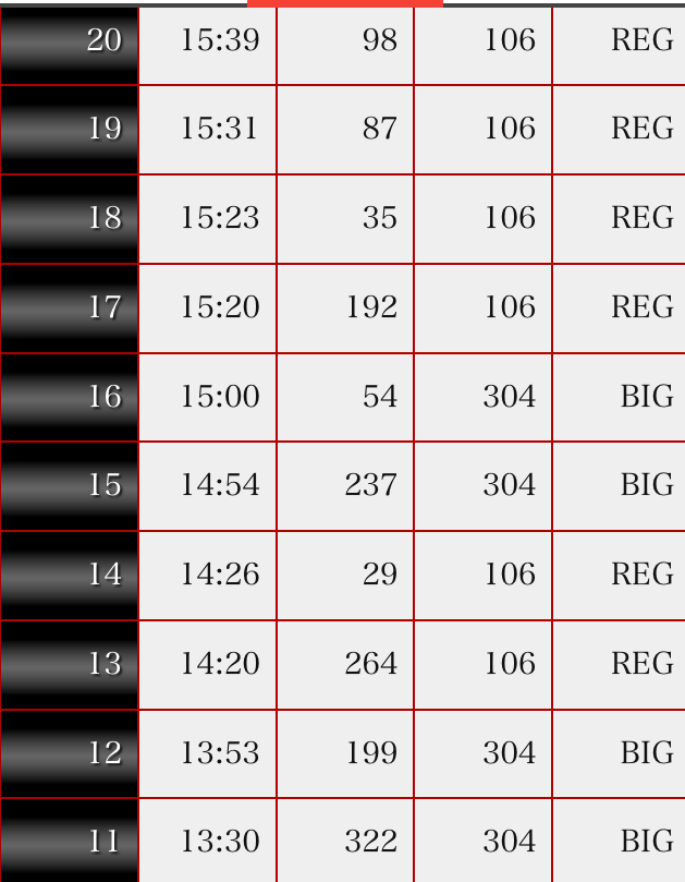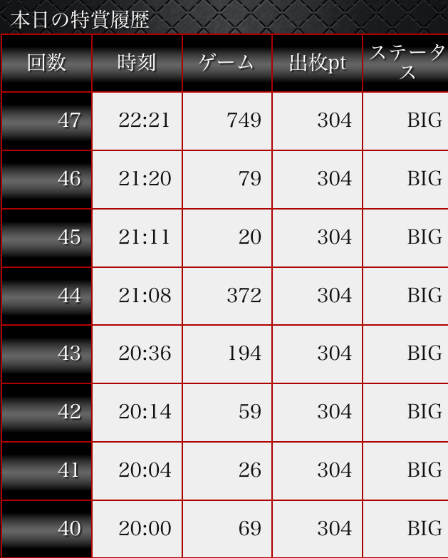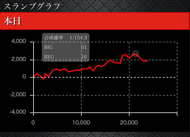実戦 設定不明クレアの秘宝伝~眠りの塔とめざめの石~ 機種実戦 2017年10月09日 0 10月の1/3が過ぎようとしているのに全く勝てていません 3日稼動して3連敗 豪快にお金を使っています 5日 H店とV店で32000円マイナス 6日 H店イベント 総投資51000円 回収42900円 8100円マイナス 7日 マルハンの糞イベント 58000円マイナス 3日の稼動で98100円マイナス・・・ しかもジャグラーで・・・ とんでもなくスランプですわ・・・ と言うことで 気分転換に県外遠征へ行くことにしました やってきたのはA店 以前ブログに載せたことがありますが 伝説(全6島)とビクトリーロード(5or6)のラインがあるというイベント 最終的にはジャグラーを打つだろうけど まずはクレアの秘宝伝~眠りの塔とめざめの石~から打ちます 3台中真ん中の台 ベルの出現も良いし第一印象はOK 76G BIG 2000円 61G BIG スタートは好調 ベルもその他の小役も良い、しかしそのまま回すが中々当たらない 520G BIG 67G BIG ビクトリーロード(5or6のライン)は5が多いようなので5に期待 BIGばかりが当たるがあまり気にしない この辺りからREGが当たりはじめた 銀キラカードも1REGに1回は出現する ジワジワと出玉は増えていくが ちょっと動き的にどうだろう? 5や6ならもっとやる気になるとロングの連チャンをするはずだがショボイな REGが連続しはじめるが銀キラもあまり出なくなる RT中の当たりも何度か引いたが(番長で消化)決定的なものは出現しない 気になるのはRT中のハズレが悪いこと 設定差のある赤ピラも出現したが これはベルとの同時成立なので設定差なし 強チャンス目も一つも出ないし 最初の500ハマリの時点でほぼ6は無いと思っていたが5もあやしい しかし出玉はまあまあ伸びて 3箱目に入り下皿分を合わせると3000枚はある 時間も残り少なくなったしここで止めれば十分なプラスだが 勝負に出る! 結果・・・ 最後の最後に749GハマってBIG そのBIG分ほぼすべて打ち込んで時間切れ 流したメダルは1980枚 2000枚なかった・・・ 4000円しか使ってないのでプラスではあるが2000円分は減らしました 勝ったけどしょんぼりして帰宅しました BIG 31回 REG 16回 総ゲーム数 7252G 合成確率 1/154.3 最終的にベル出現率も1/6.2 やっぱり高設定は1REG中に銀キラが2回に金キラ1回出現したりと よく出る そしてRT中のハズレがやっぱり全然だった 1/10くらい 全然ダメですね ヘタすりゃ4も無いかも知れん・・・ ただチェリーとの同時成立は多かったです スイカでBIGも1度あり スイカREGなら5or6なのだが・・・ 総投資 4,000円 回収 39,600円 プラス 35,600円 まあ、勝ったので良しとしておきます 今月初勝利! スランプ脱した! かな・・・・・・? にほんブログ村 よろしければポチッとお願いします パチスロ ブログランキングへ こちらもポチッと! こんな記事も書いています スポンサード リンク 設定6を掴む為のスロット営業解体新書 管理人アボットも購入しました! アボットのレビューを見てみる 設定6を掴むためのジャグラー営業裏話 パチスロあんてな PR http://kinslo.7narabe.net/%E6%A9%9F%E7%A8%AE%E5%AE%9F%E6%88%A6/%E5%AE%9F%E6%88%A6%E3%80%80%E8%A8%AD%E5%AE%9A%E4%B8%8D%E6%98%8E%E3%82%AF%E3%83%AC%E3%82%A2%E3%81%AE%E7%A7%98%E5%AE%9D%E4%BC%9D%EF%BD%9E%E7%9C%A0%E3%82%8A%E3%81%AE%E5%A1%94%E3%81%A8%E3%82%81%E3%81%96%E3%82%81%E3%81%AE%E7%9F%B3%EF%BD%9E実戦 設定不明クレアの秘宝伝~眠りの塔とめざめの石~