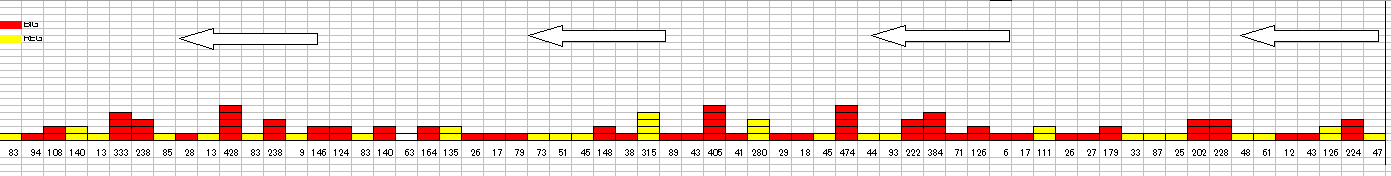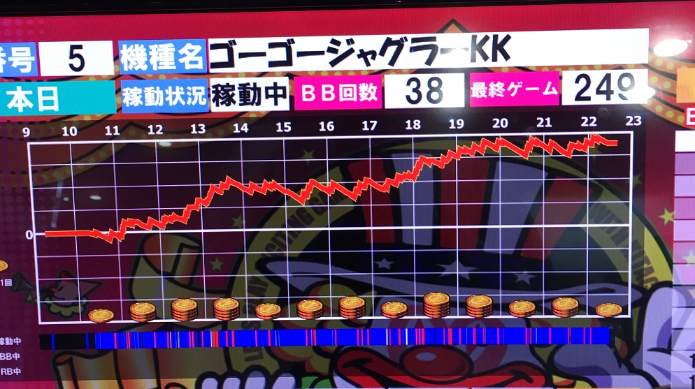 実戦 GOGOジャグラー 機種実戦 2017年07月10日 0 7月7日七夕の日 7が2つ並ぶ日 しかも今年は2017年7月7日 7が3連する日です 全国各地のパチ屋で熱めのイベントが秘かに行われたのでは無いだろうか 毎年一応期待するのだが、今まで岡山県のホールではこれといって特に変わりなかった 普段通りの通常営業がです 今年はちらほら7月7日に向けて煽りメールが来ている と言うことで、今回は ・全BOXに6投入 ・高設定比率UPのSPコーナー ・高設定の連続投入 ・ALL設定コーナー などをぶち込むと言う某ホールへ行って見る このホール、以前は6を探す楽しみがあるホールとの触れ込みで 専業や軍団で一瞬にぎわっていたのだが、 最近はめっきり人が減りそこら辺のホールとなんら変わりは無い それどころか、閑古鳥が鳴いている 最近の客は少しでも店がやる気の無さをみせると敏感に反応して 一瞬で客は減る 難しいですね、ホールさん! しかし、しっかり煽っているのにガセイベントだったりショボかったりすると、 イベントがこの程度なのに通常営業で高設定使っていると思えないですものね。 煽るならちゃんと出す! そうしないと客は来ません! さて、実戦です 少し遅れて入店 座ったのはGOGOジャグラー 前日ある程度回っていて凹んでいる台 数G回されている ぶどうはまずまず すると47GでREG 連チャンは無し しかしぶどうはやはり良い 追加投資し180G程回すが当たらないので隣の台へ移る しかしこの台はぶどうがダメダメ。 少ししか回してないので分からないけど、元の台へ戻る すると224Gチェリーとの同時成立でBIG つぎは126GでREG そして 43G BIG 12G BIG 6G REG 48G REGチェリー と、連チャン! これは良い感じです この時点で割りと期待してました と言うことでG履歴のグラフ クリックして拡大して見て下さい 私は高設定には高設定の”出方”があるように思っています 完全確率なんだからそんな物あるわけ無いという人が大部分かもしれないが 別に反論はしない しかし打てば打つほどそう思えてくる まあ、大人の事情と言うヤツだと思いますよ。 信じるか信じないかはあなた次第! 穏やかな右肩上がり 後半の当たり方がちょっと不安げだったけど 最後は170Gほど回して止め 最終ゲーム249となっているのは誰か回していたからです 総回転数7582G BIG 38回 REG 25回 獲得枚数 3823枚 76400円 投資6000円 プラス70400円 ツールにいれた結果 4が一番濃厚になっているが4では無いと思う 6なのか?と言えば違うと思いますね 個人的には5で そしてこの実戦ホールの状況ですが、全BOXに6投入とうたっているくせに アイムジャグラーのある島は最悪だったし、他の島みても本当に6使ってるのか? と疑いたくなるような状態でした 残念な6はあるけど、これでは残念な6ばかりじゃないの、 こういうのに客は反応する まあ出てくれて良かったです。 にほんブログ村 よろしければポチッとお願いします パチスロ ブログランキングへ こちらもポチッと! こんな記事も書いています スポンサード リンク 設定6を掴む為のスロット営業解体新書 管理人アボットも購入しました! アボットのレビューを見てみる 設定6を掴むためのジャグラー営業裏話 パチスロあんてな PR http://kinslo.7narabe.net/%E6%A9%9F%E7%A8%AE%E5%AE%9F%E6%88%A6/%E5%AE%9F%E6%88%A6%E3%80%80gogo%E3%82%B8%E3%83%A3%E3%82%B0%E3%83%A9%E3%83%BC実戦 GOGOジャグラー