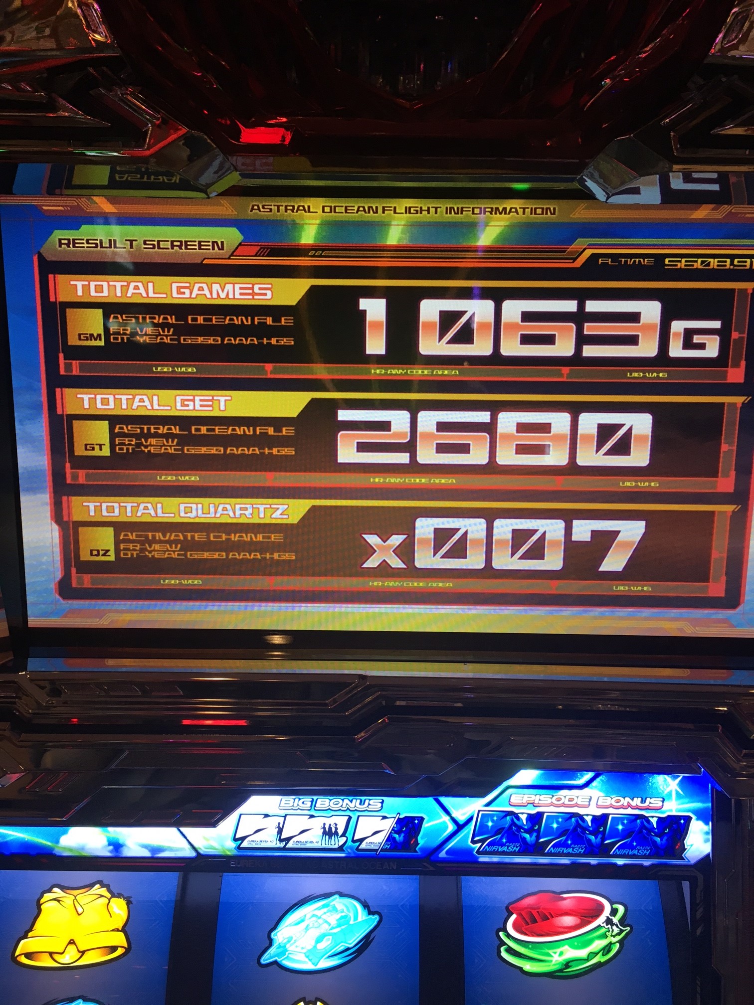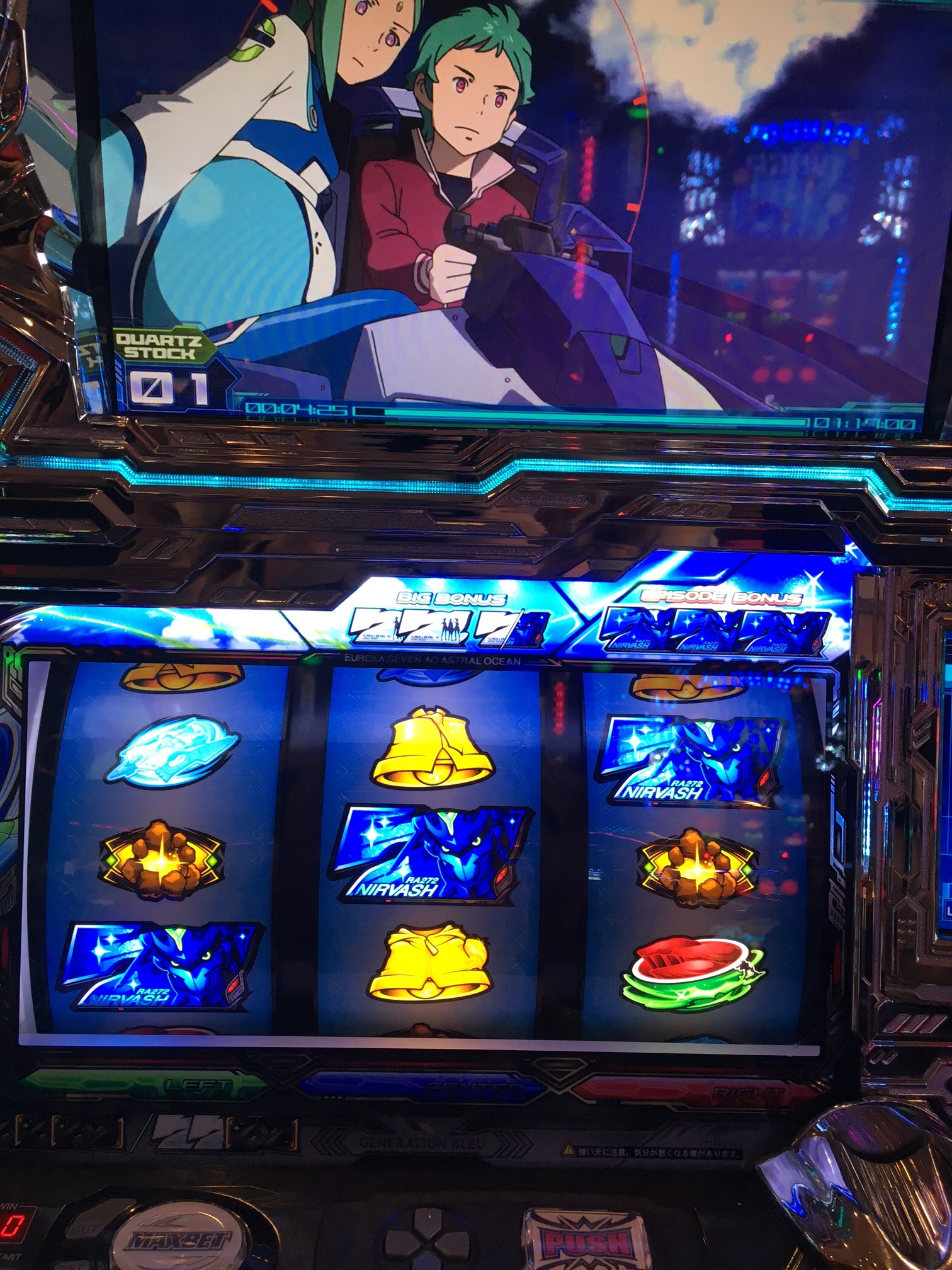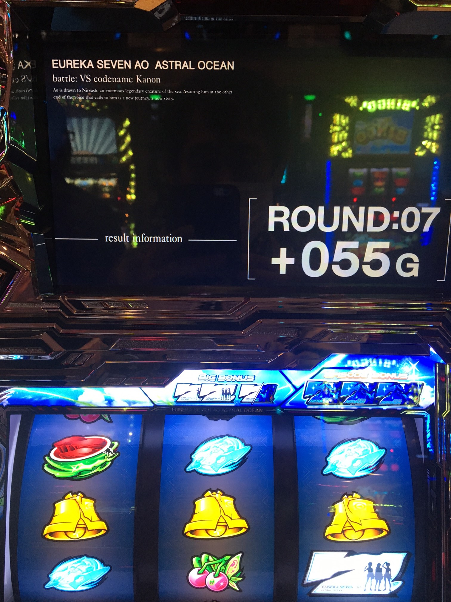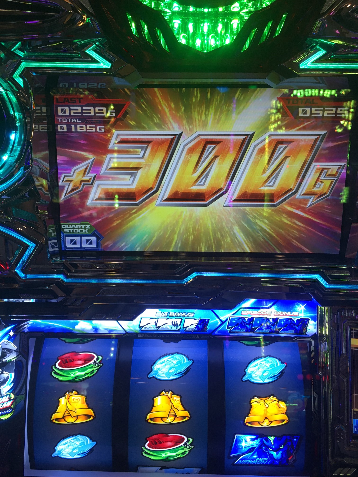 実戦 エウレカセブンAO 機種実戦 2017年02月10日 0 本日はでちゃうガールズ来店のホールへ。 午前中郵便物が届く予定になっていたので11時頃ホールへ到着。 まあまあの客着き。 いつものようにジャグラーの反応を探る。 数台打ちちらかしてニューアイムで落ち着く。 REGばかり7発もつづいて、5か?と思って粘ったがどうやらダメそう。 結構時間も経過して良さげな台は発掘されてしまった感がある。 他の台をちょろちょろ打って回るがダメ。 完全にあぶれた。 時間はもう17時前。 どうしようか~、とAT・ARTの島を徘徊していると全くハマッてないエウレカセブンAOを発見。 今日はそこそこ出しているようなので、勝負することに。 初打ちです。 全く知識がなかったので、スマホで要点をチェック。 マイスロもセットOK 3,000円使ったところで初CZからART当選。 クウォーツアクティベートチャンス(QAC) 初期G数が20Gで、こいつでG数を上乗せしていくんですね。 これは20G上乗せして40Gスタート。 何も起こらず終了。 さらに1,000円追加で強チェリーから白BIG。 ART当選ならず。 これは出るのか? 不安になりつつも続行。 出玉飲まれてさらに追加投資。 全部で9,000円使ったところでなんと中段チェリー! BAR揃いなしの中段チェリーの出現率は1/5461。 出現しやすいんですね。 が、揃ったBIGは青色。 ART確定です。 青7の場合初期G数は50Gあるようです。 そのART中、弱チェリーからのBIGも確認。 さらにREG・BIGと引けて900枚程度の出玉を確保。 その後チャンス目から青BIG一発(さほど見せ場なく終了) と、CZからしょぼいARTを2・3回繰り返す。 400G超えたところで弱チェリーから強めの演出に発展。 当たるかもな!と数G回したところで中段チェリー! 揃ったBIGは白白青。 これは弱チェリーで当たったのか中段チェリーなのか? 青BIGじゃなかったことにショックしつつ消化しているとBAR揃いしてくれて助かった。 このARTはあまり伸びなかったけど、終了後すぐにCZが成功。 で、終了後またまたすぐにCZが成功! そしてそのQACがうまく続いて 270G乗せ。 もらった! そしてART消化中ベルが揃ってフリーズ! BAR揃いの中段チェリーが来たか?!と思ったら 300G上乗せしました。 中段チェリーじゃなかったが上出来です。 QACの分と合わせて残りG数500Gオーバー。 このART中は何度もシークレットバトルやカノンバトルに突入したが あまり乗らない。 一番良く続いたカノンバトルもこの程度でした。 その後ボーナスも数回引き2500枚オーバーの出玉を獲得 時間は21時ちょうど。 液晶のあおりが終わったので止め。 出玉を流すと3,110枚。 本日の総投資が36,000円だから何とかプラスに持っていけました。 良かった! たぶん高設定だと思うけど確定演出は確認できませんでした。 チャンス目と弱チェリーからのボーナスが多かったですね。 ボーナスもCZ出現率もかなり軽かったです。 隣のあきらかなクソ台とは全然動きが違いました。 大満足! 総投資36,000円 回収 62,200円 プラス26,200円 帰りに気づいたのだが、 マイスロを記録するのを忘れてました(涙) 残念! にほんブログ村 よろしければポチッとお願いします パチスロ ブログランキングへ こちらもポチッと! こんな記事も書いています スポンサード リンク 設定6を掴む為のスロット営業解体新書 管理人アボットも購入しました! アボットのレビューを見てみる 設定6を掴むためのジャグラー営業裏話 パチスロあんてな PR http://kinslo.7narabe.net/%E6%A9%9F%E7%A8%AE%E5%AE%9F%E6%88%A6/%E5%AE%9F%E8%B7%B5%E3%80%80%E3%82%A8%E3%82%A6%E3%83%AC%E3%82%AB%E3%82%BB%E3%83%96%E3%83%B3ao実戦 エウレカセブンAO
