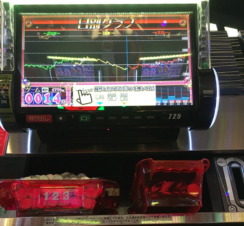 実戦!マイジャグラーⅢ 123+N岡山本店20180305 機種実戦 2018年03月08日 0 3月5日 123+N岡山本店 5が付く日だからかジャグラーの煽り いつものように開店してからちょっとして入店 平日なのでまだまだ空き台もある 早い当たりが来てもすぐに止める客もいる 最近は朝一、台がどんな反応をしているかを見てから打つ台を決めている ぐるっと店内を見てまわりマイジャグラーⅢの島で足が止まる 73G BIG 81G REG 172G BIG 167G BIG 現在260Gくらいの空き台があった いい感じじゃないの? 珍しくマイジャグラーⅢを打ってみるか つづきはこちら にほんブログ村 よろしければポチッとお願いします パチスロ ブログランキングへ こちらもポチッと! こんな記事も書いています スポンサード リンク 設定6を掴む為のスロット営業解体新書 管理人アボットも購入しました! アボットのレビューを見てみる 設定6を掴むためのジャグラー営業裏話 パチスロあんてな http://kinslo.7narabe.net/%E6%A9%9F%E7%A8%AE%E5%AE%9F%E6%88%A6/%E5%AE%9F%E6%88%A6%EF%BC%81%E3%83%9E%E3%82%A4%E3%82%B8%E3%83%A3%E3%82%B0%E3%83%A9%E3%83%BC%E2%85%A2%E3%80%80%EF%BC%91%EF%BC%92%EF%BC%93%EF%BC%8Bn%E5%B2%A1%E5%B1%B1%E6%9C%AC%E5%BA%9720180305実戦!マイジャグラーⅢ 123+N岡山本店20180305